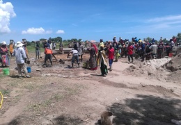 Wananchi wa Kata ya Ufukoni wakijitolea kumwaga wakijitolea kumwaga zege jamvi ikiwa ni muendelezo wa ujenzi wa madarasa matatu ya Shule ya Sekondari ya Sino.