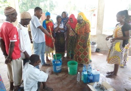 Wanakikundi wa kikundi cha Maendeleo wakitengeneza sabuni ya maji