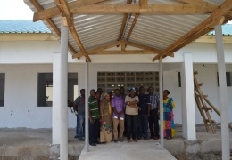 Timu ya ukaguzi wa miradi kutoka Ofisi ya Mkuu wa Mkoa na Menejiment ya halmashauri wakiwa kwenye picha ya pamoja mbele ya jengo la Mama na Mtoto baada ya kumaliza ukaguzi wa mradi wa ujenzi ...